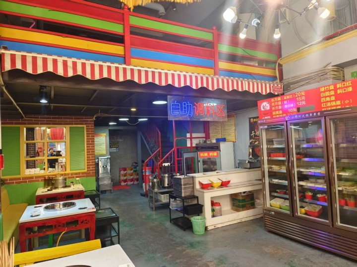 门市格局方正,通风条件好,可操作性强,水电气三通(带天然气),装修精美无需再耗费精力去大力装修,接手可以经营,目前经营火锅串串店,业态不限制,可以做中餐,火锅,串串,江湖菜,汤锅等等。