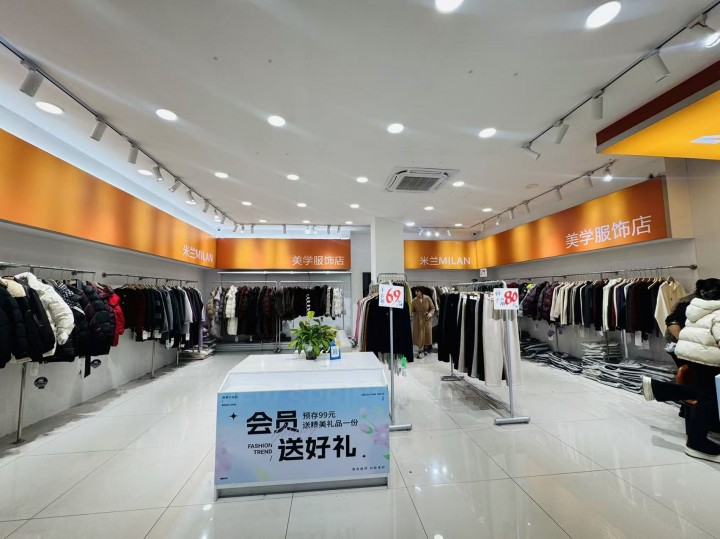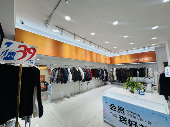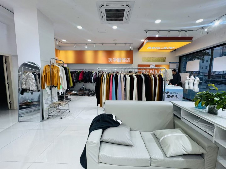 店铺目前经营的是女装店,装修精美,双门头,招牌显眼展示面广全部无任何遮挡,门市方方正正格局好操作空间大,有独立洗手间,格力大5P空调新的,还有库房能随意利用。